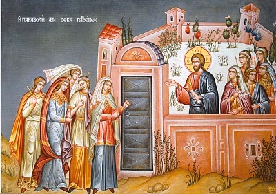 – Dentro de este marco Jesús, pronuncia la parábola de las Diez vírgenes, está tomada de los hechos corrientes de la vida, esta vez de cómo se hacían las bodas en su tiempo. El esposo tarda en llegar, y las doncellas que están designadas para recibirle cuando llegue, se duermen. PEro cinco tienen aceite para sus lámparas, y cinco, no. A estas necias se les cierra la puerta del banquete mientras van a comprar aceite, y a las otras cinco sí entren. Jesús mismos nos da una lección de la parábola: “VELAD, PORQUE NO SABÉIS EL DÍA NI LA HORA”, es la venida última del Señor.
