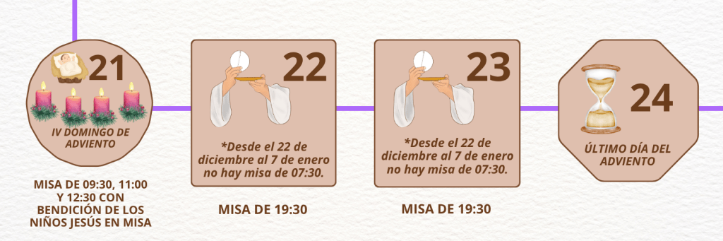 Desde el 22 de diciembre al 7 de enero no hay misa de 07:30.