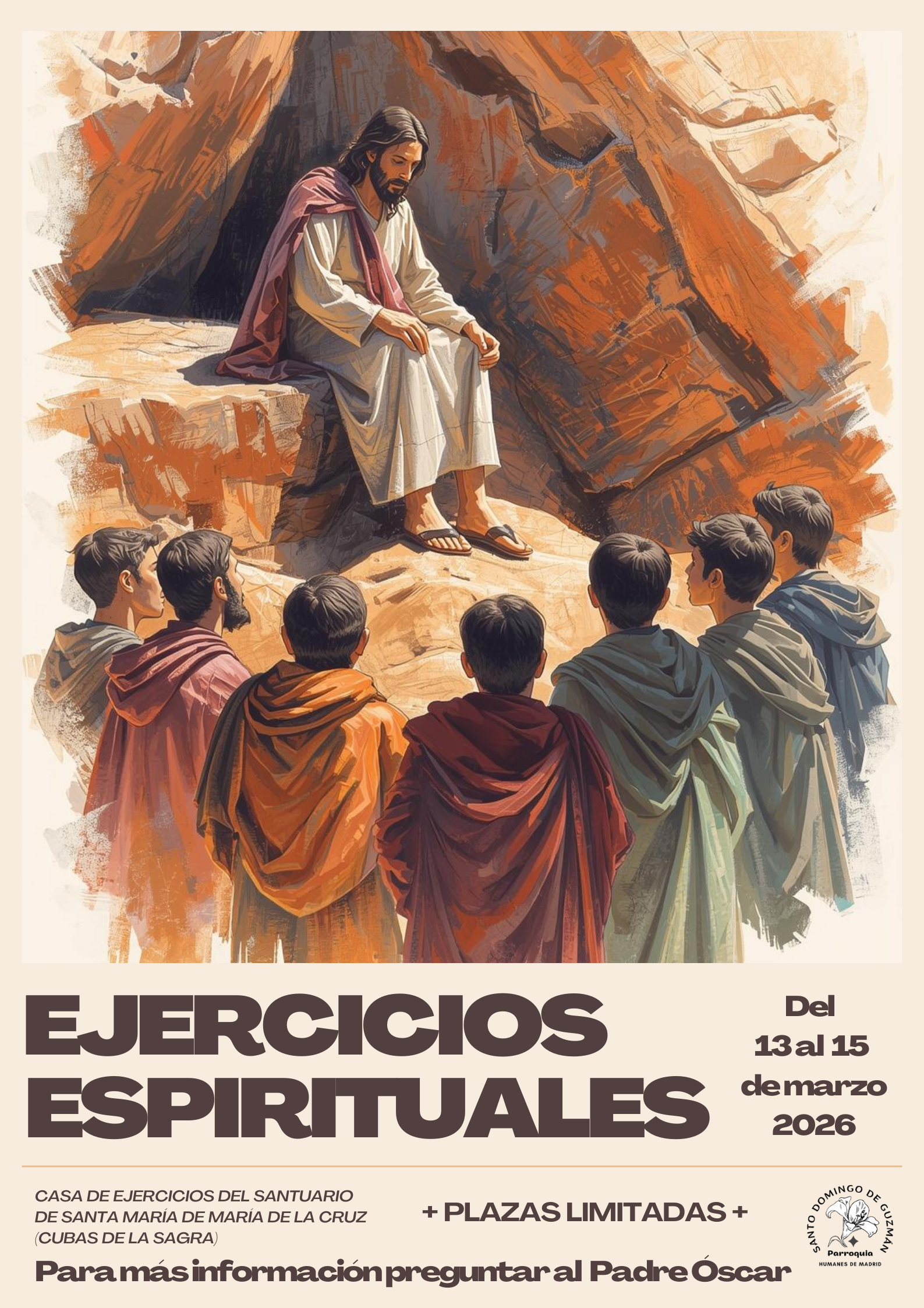 Pulsa para ampliar información. Destaca los ejercicios espirituales en el Santuario de Santa María del Cruz (Cubas de la Sagra) Para más información preguntar al Padre Óscar.
