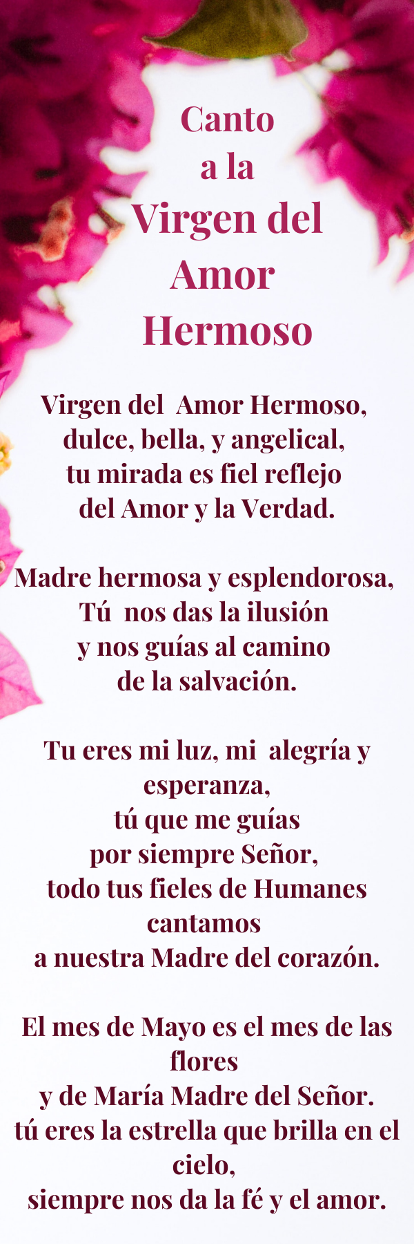 Como devoción a la Virgen surge una institución madrileña: LA CORTE DE MARÍA. Donde se reunían algunas personas a celebrar el mes de MARÍA. A primero de mayo de 1839, encargaron una imagen que hoy se venera en San Gines. Uno de estos coros estaba ya fundado en Humanes en 1847. Se cree que la Hermandad de Humanes es heredera de la de Madrid por algunas de sus similitudes: el escapulario es una reproducción de la primera Virgen de Madrid, las cintas que adornan la imagen en la procesión llevan bordadas la inscripción «CORTE DE MARÍA». Se celebra el 31 de mayo. Se cree que la fiesta fue trasladada al último fin de semana de mayo porque era cuando libraban las mujeres que iban a servir a Madrid. En aquella época era una fiesta solamente de mujeres, les daban descanso a los hombres. En Humanes es conocida como la fiesta de las «mozas», ya que hay un grupo de mujeres jóvenes que se visten de mantilla y peineta, para honrar a nuestra MADRE DEL AMOR HERMOSO, en representación de las mujeres de la Hermandad.